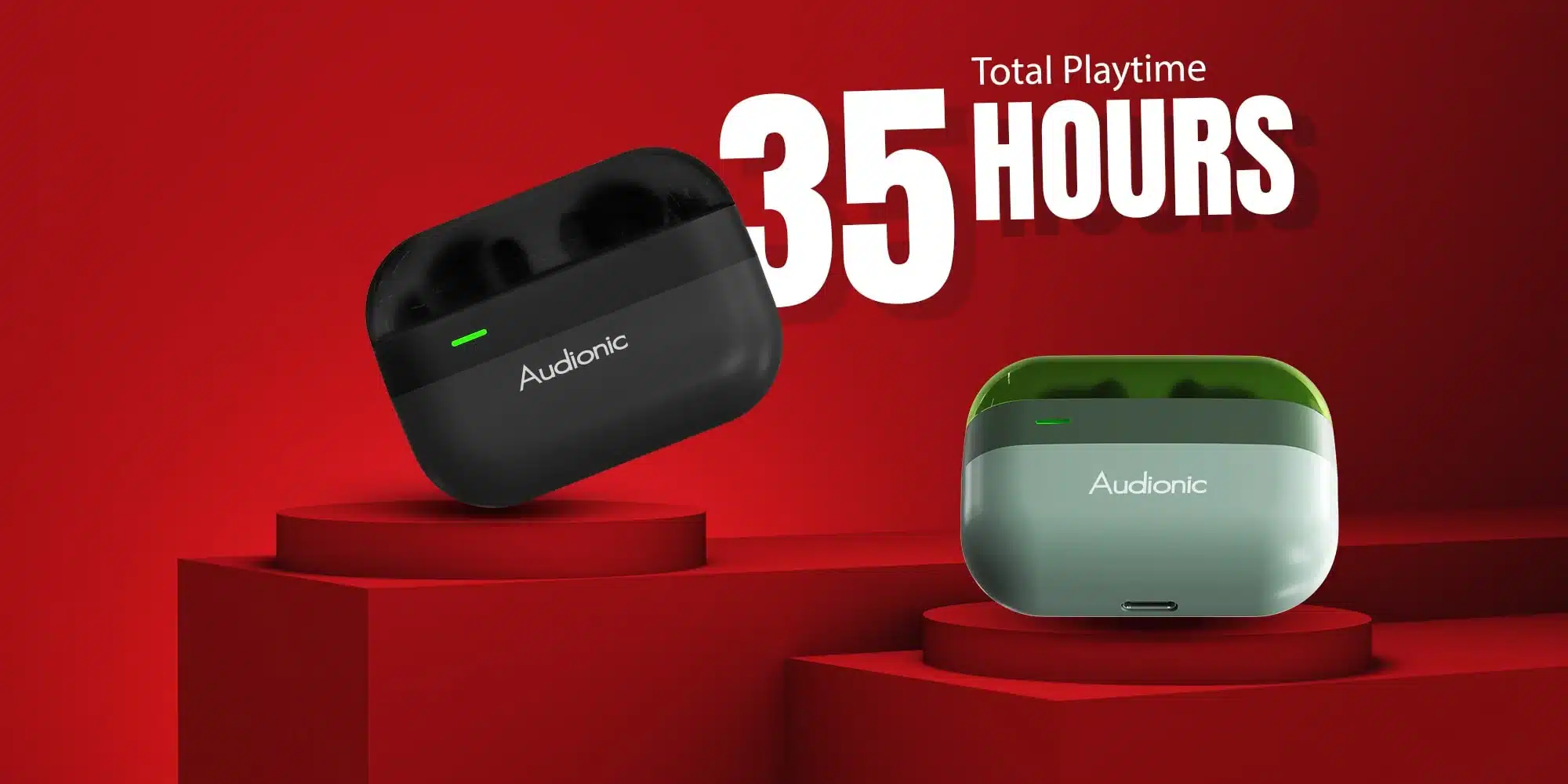 - Audionic Airbud 550 Earbuds Specification:Playtime: up to 7 hours