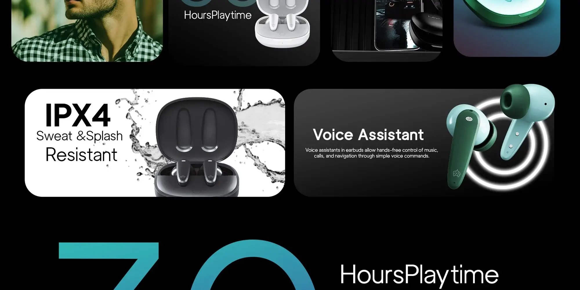 - IPX8 Waterproof for Sports and Ergonomic FitPlayback
