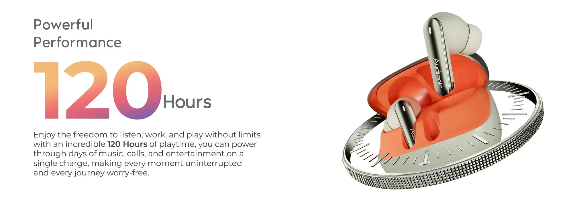 - Upto 5 hours playtime (24 hours with charging case)
