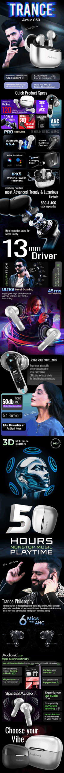 Audionic Trance Airbud 850 with 6 Mics ANC