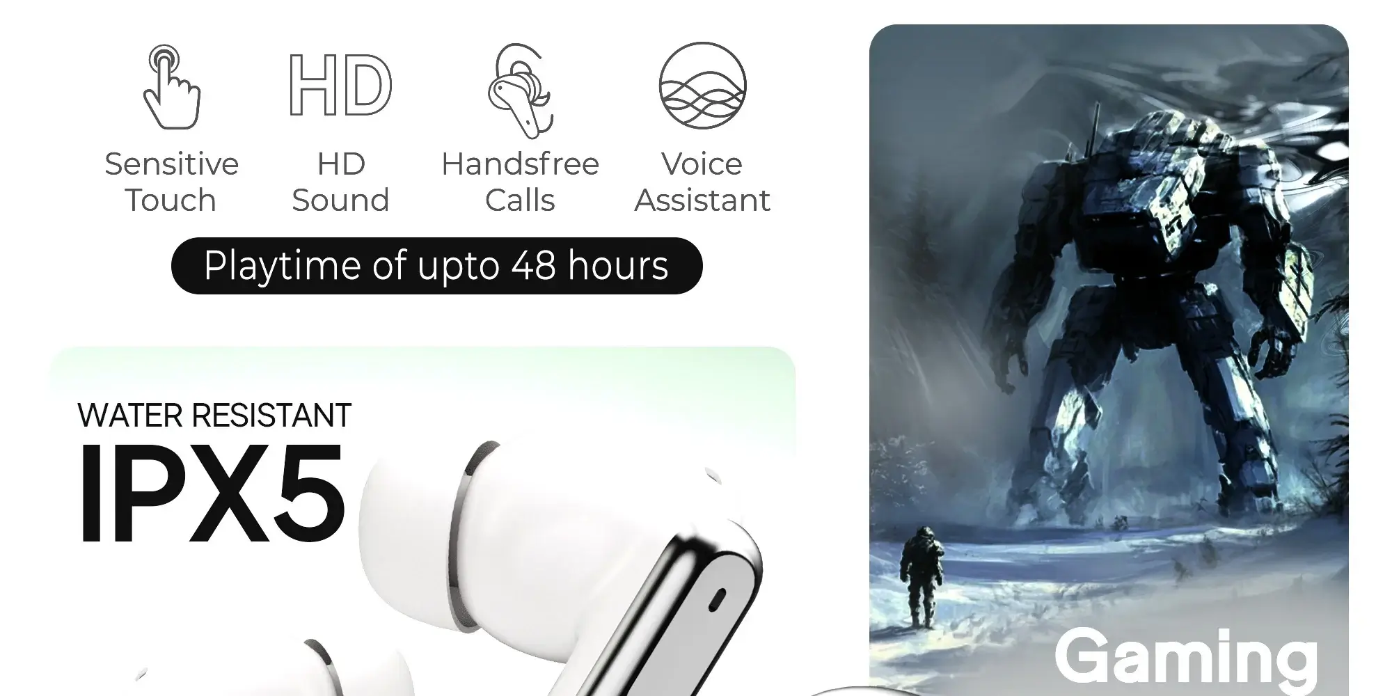 - Sensitive Control & Total 20H (5 hours of playtime per charge and another 3 recharges by the delicate charging case)