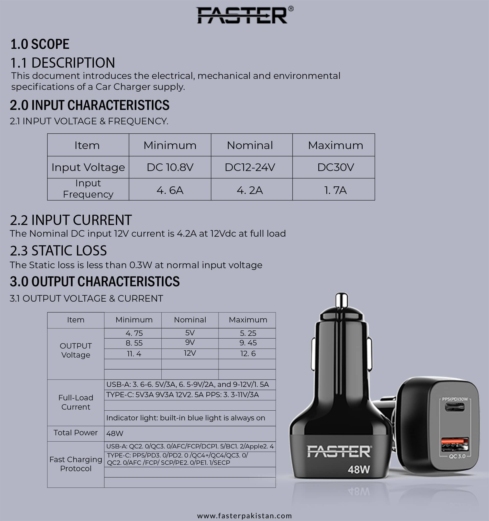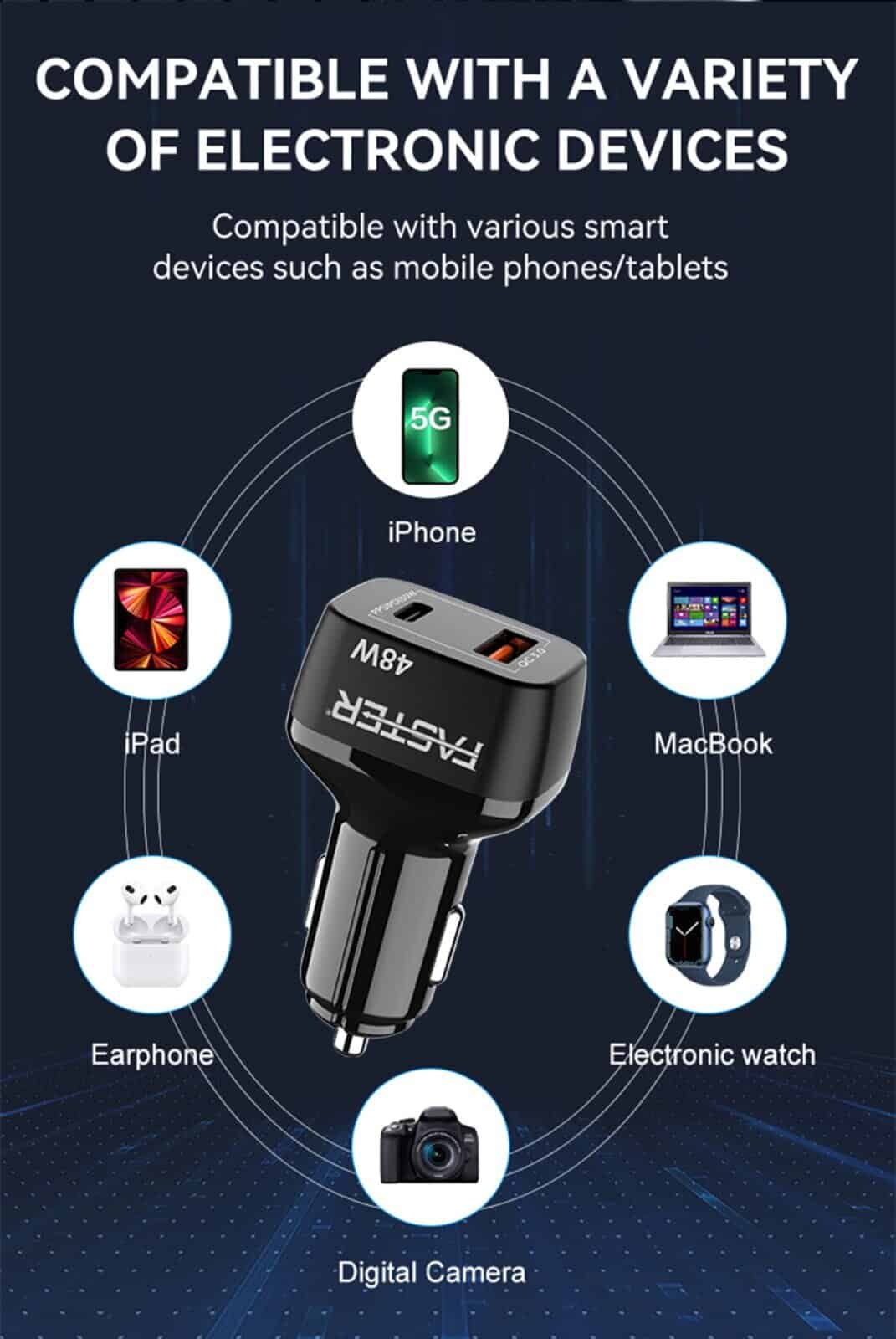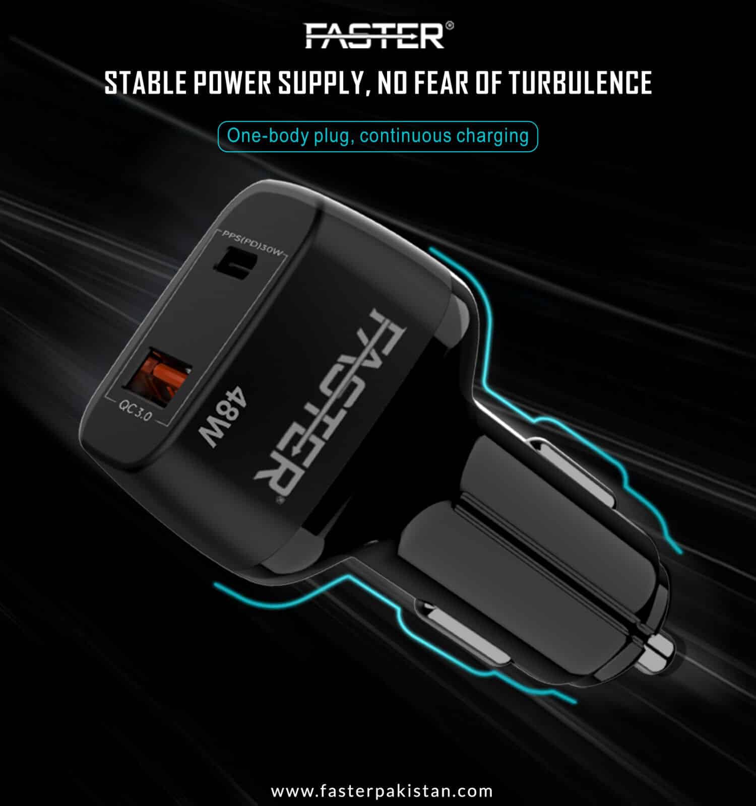 FASTER C7-PD 48w Fast Car Charger PD2.0,PD3.0 & PPS QC 4.0A Supported