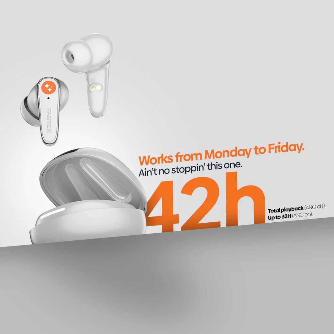 - Up to 42H total playtime (32H with ANC) supports long use without frequent charging.