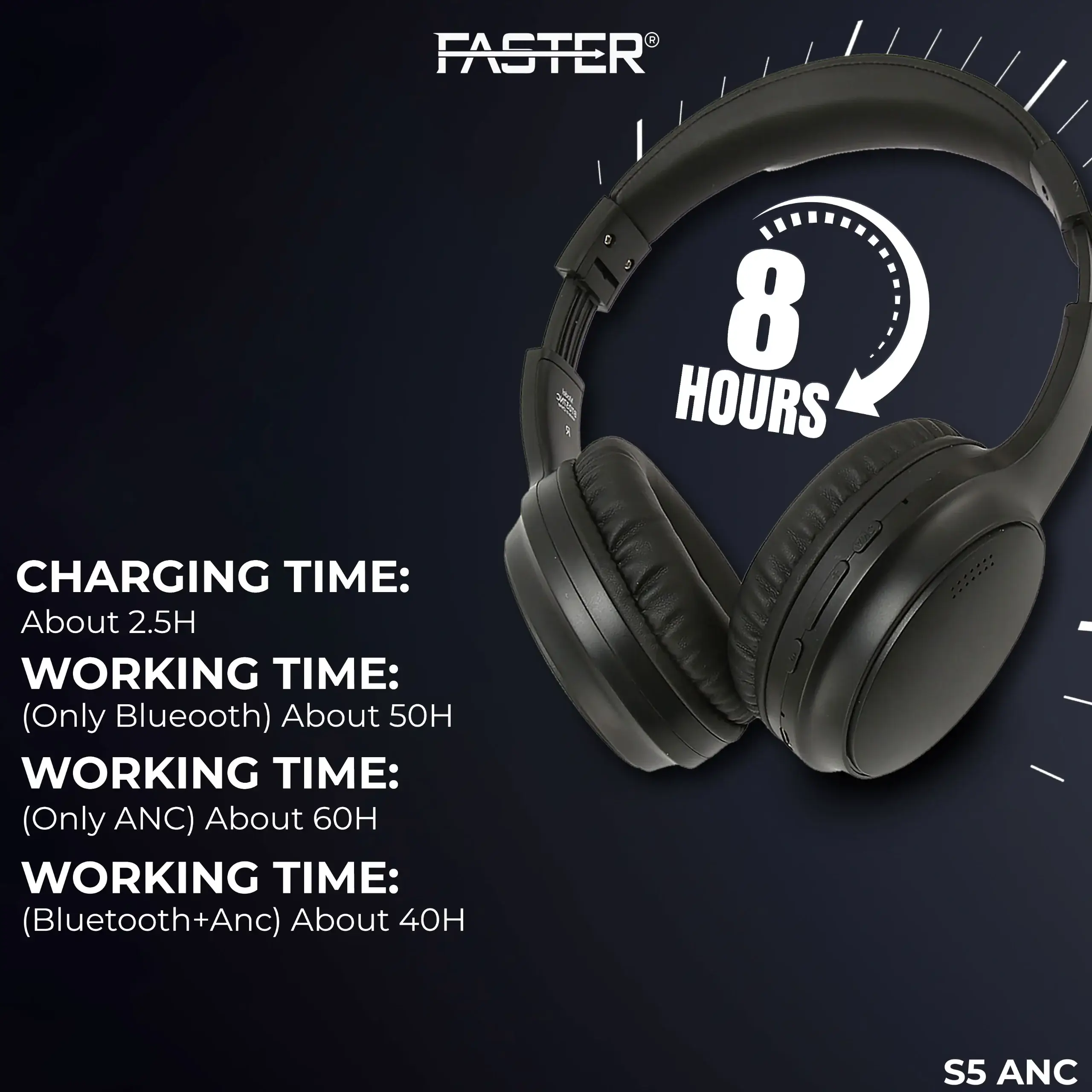 FASTER S5 ANC Over-Ear Wireless Headphones with Active Noise