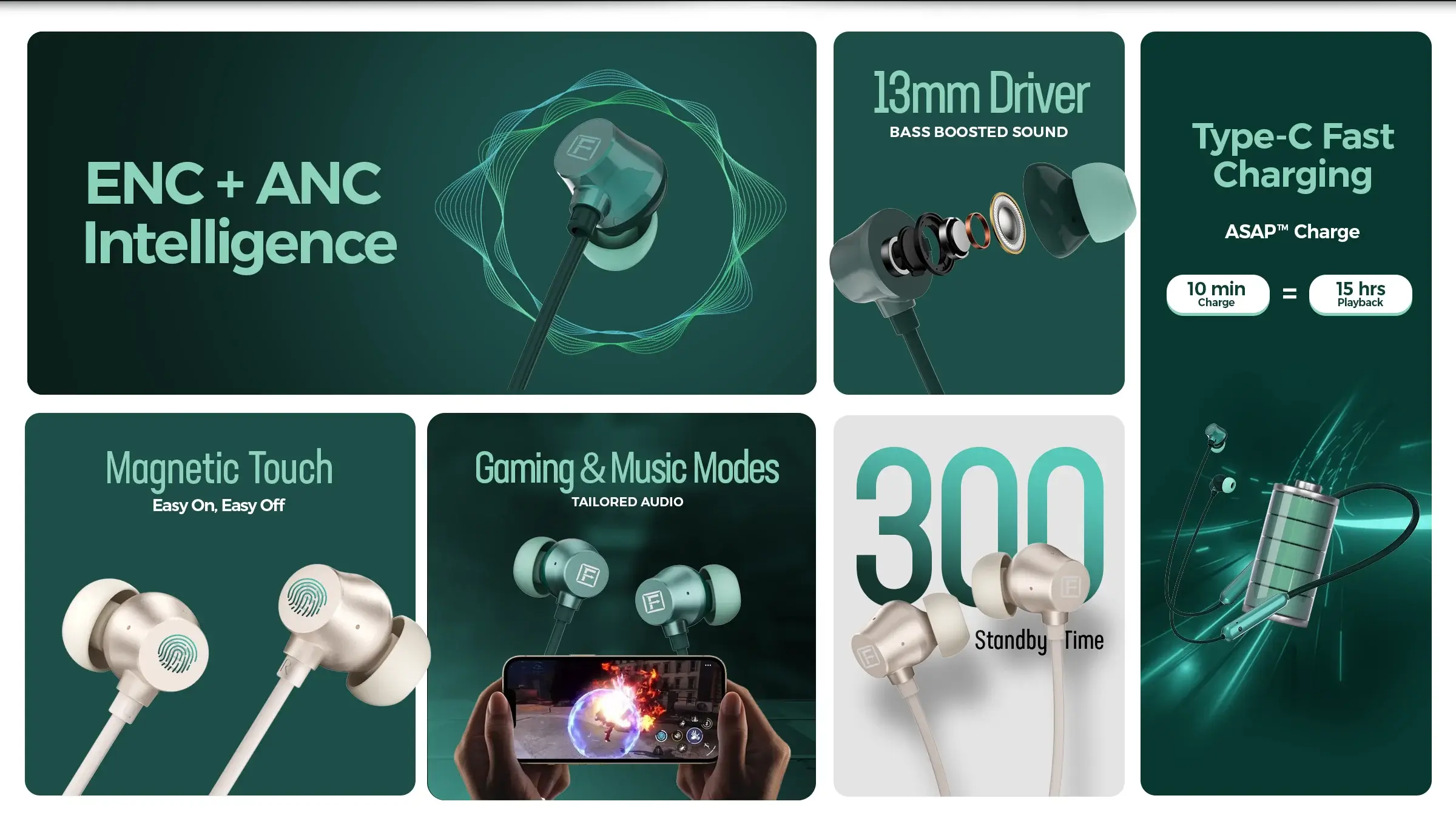 The Faster TG-340 Sports Neckband impresses with its advanced features and reliable performance, making it an excellent choice for travellers and professionals alike. Equipped with the JL7006 F8 V5.4 chipset, it offers effective Active Noise Cancellation (ANC) and Environmental Noise Cancellation (ENC), enhancing call quality in various environments.