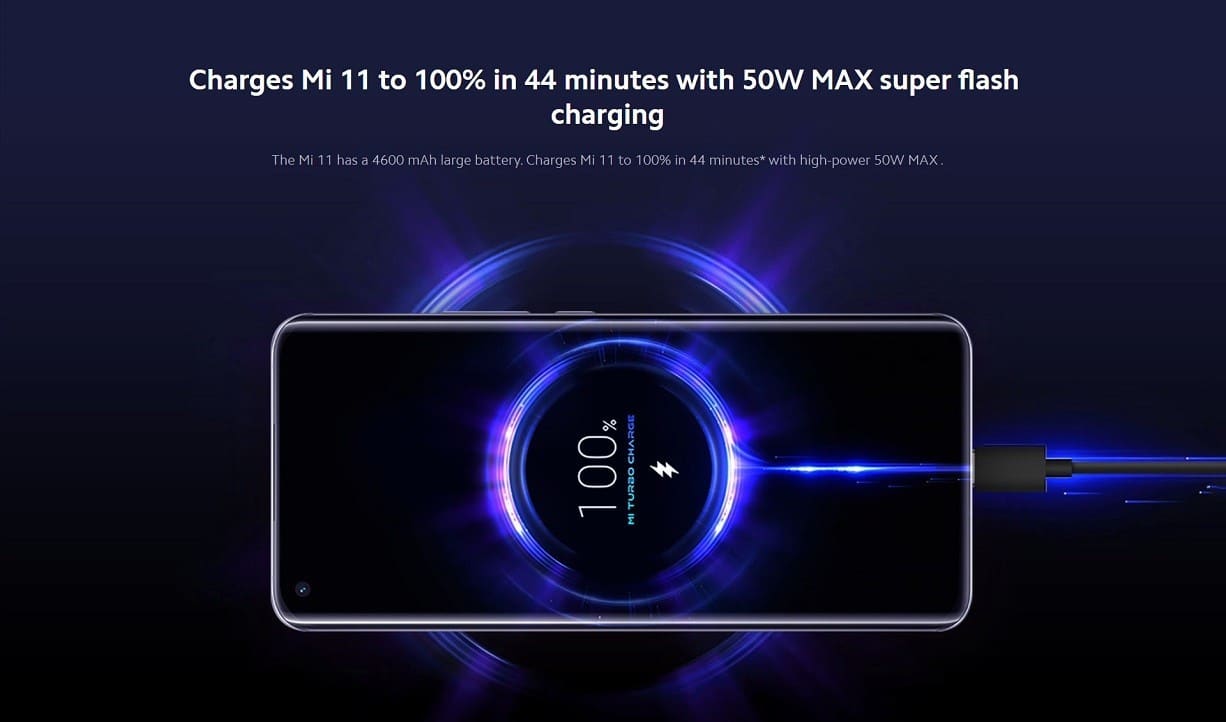 - Mi 11:Â Full Charge in 1.6hrs