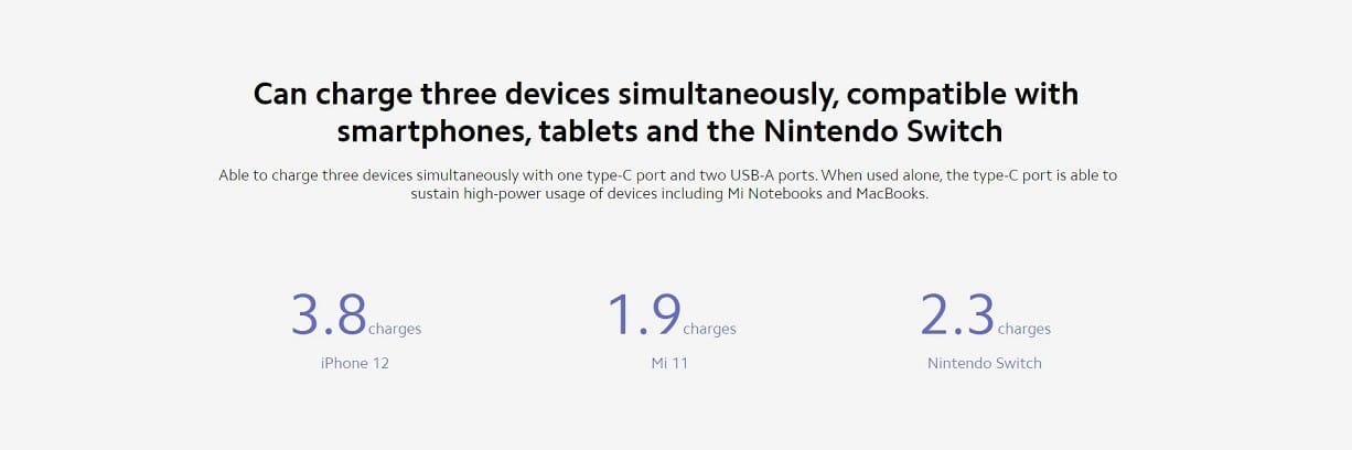 Charges the Mi 11 to 100% in 44 minutes - Can charge three devices simultaneously