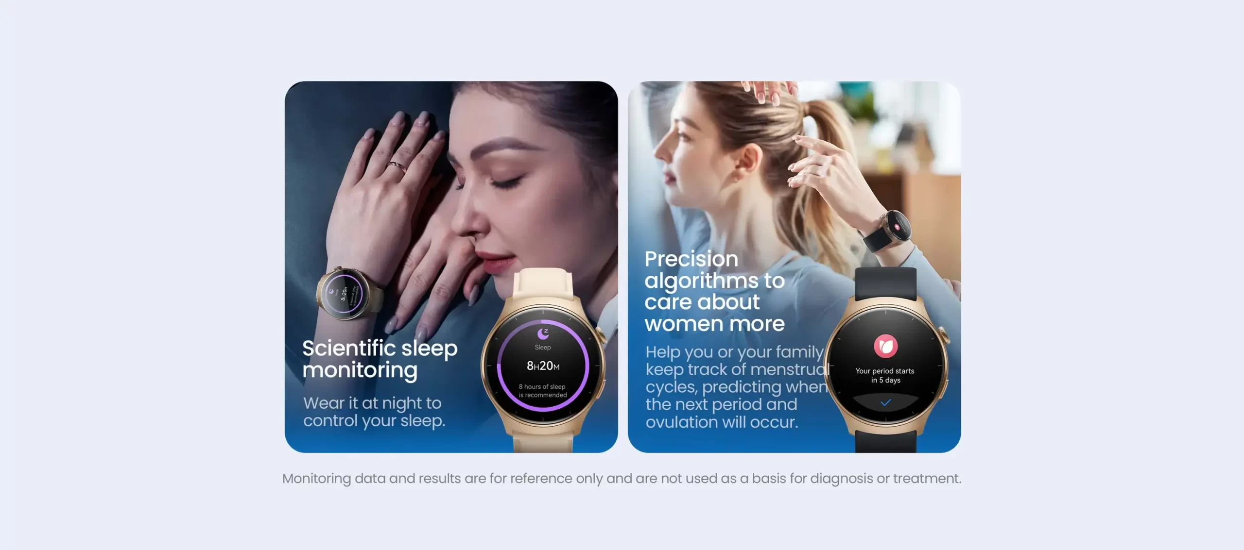 24/7 monitoring of heart rate, oxygen levels, stress, and sleep, with alerts for abnormal readings and women health care.