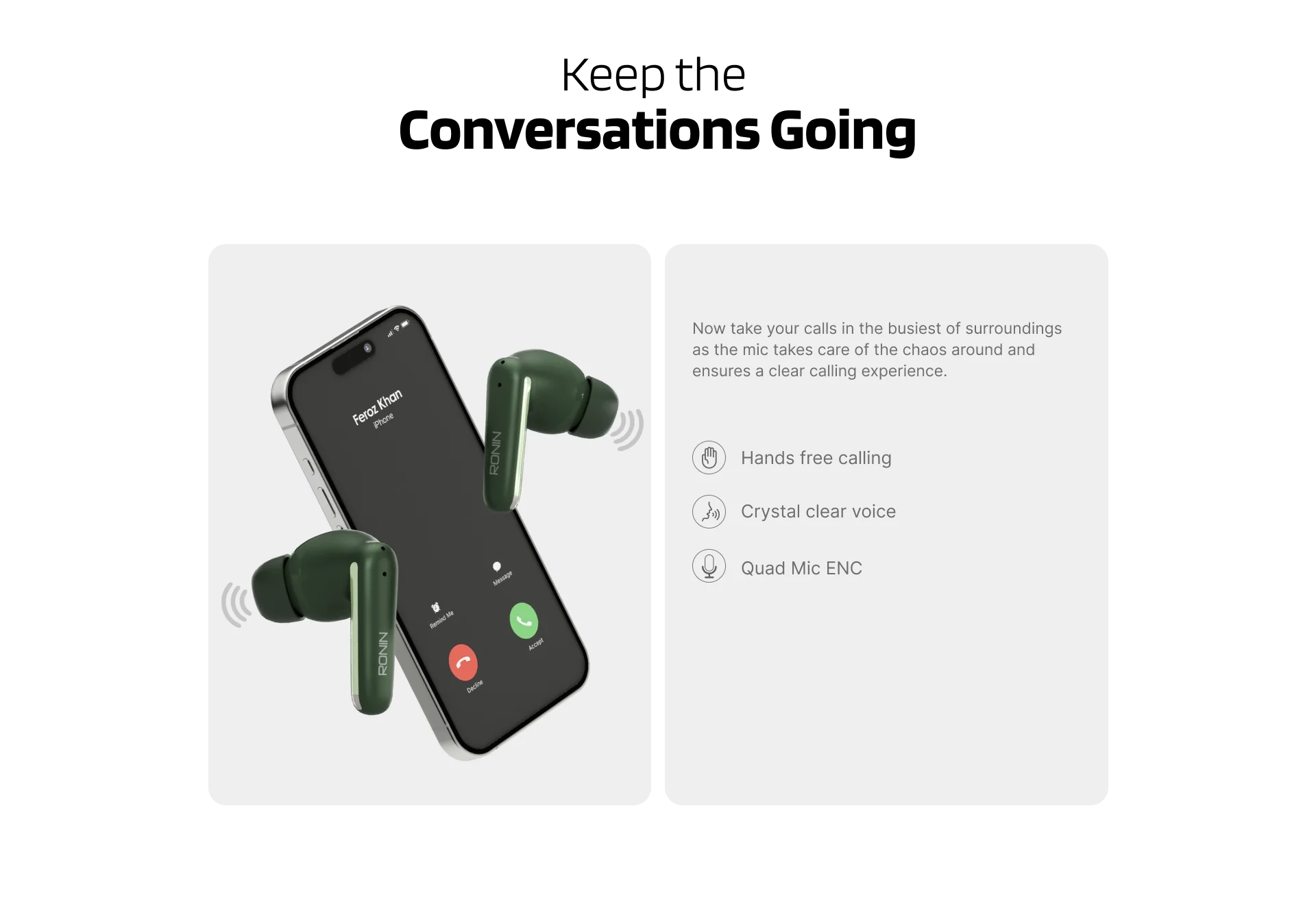 Ronin R-140 Wireless Earbuds ANC + ENC