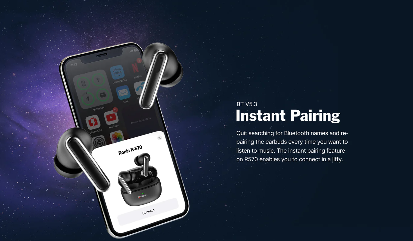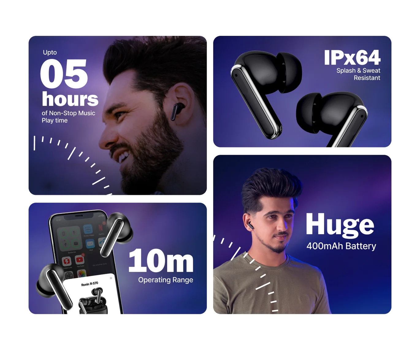 Ronin Earbuds Model no delivers a great call-quality experience in Quad Mic ENC.