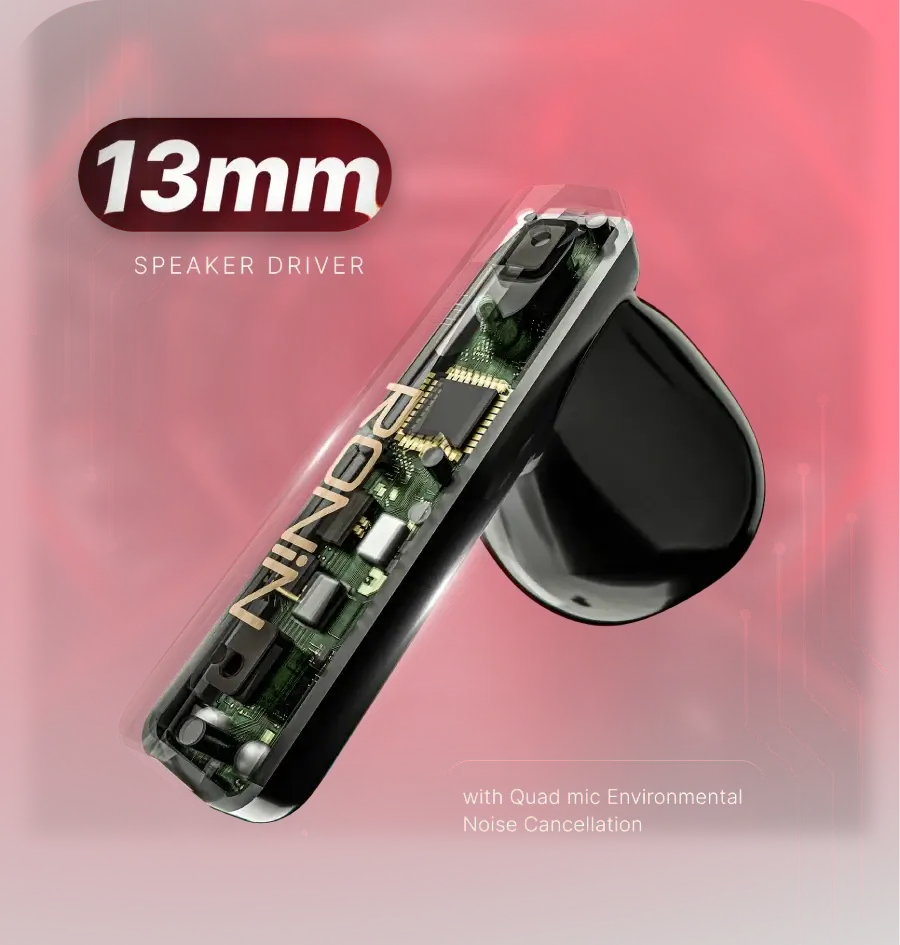 Where sound meets spin the Iron Edge R-7090 brings gaming power and fidget spinner innovation together in one bold design. Enjoy HD sound, ENC clarity, touch controls, and Type-C fast charging all packed in an IPX4 water-resistant build. With Bluetooth 5.4, Ronin Studio App support, and a 1-year official warranty, Iron Edge is built for those who play, move, and live on the edge.