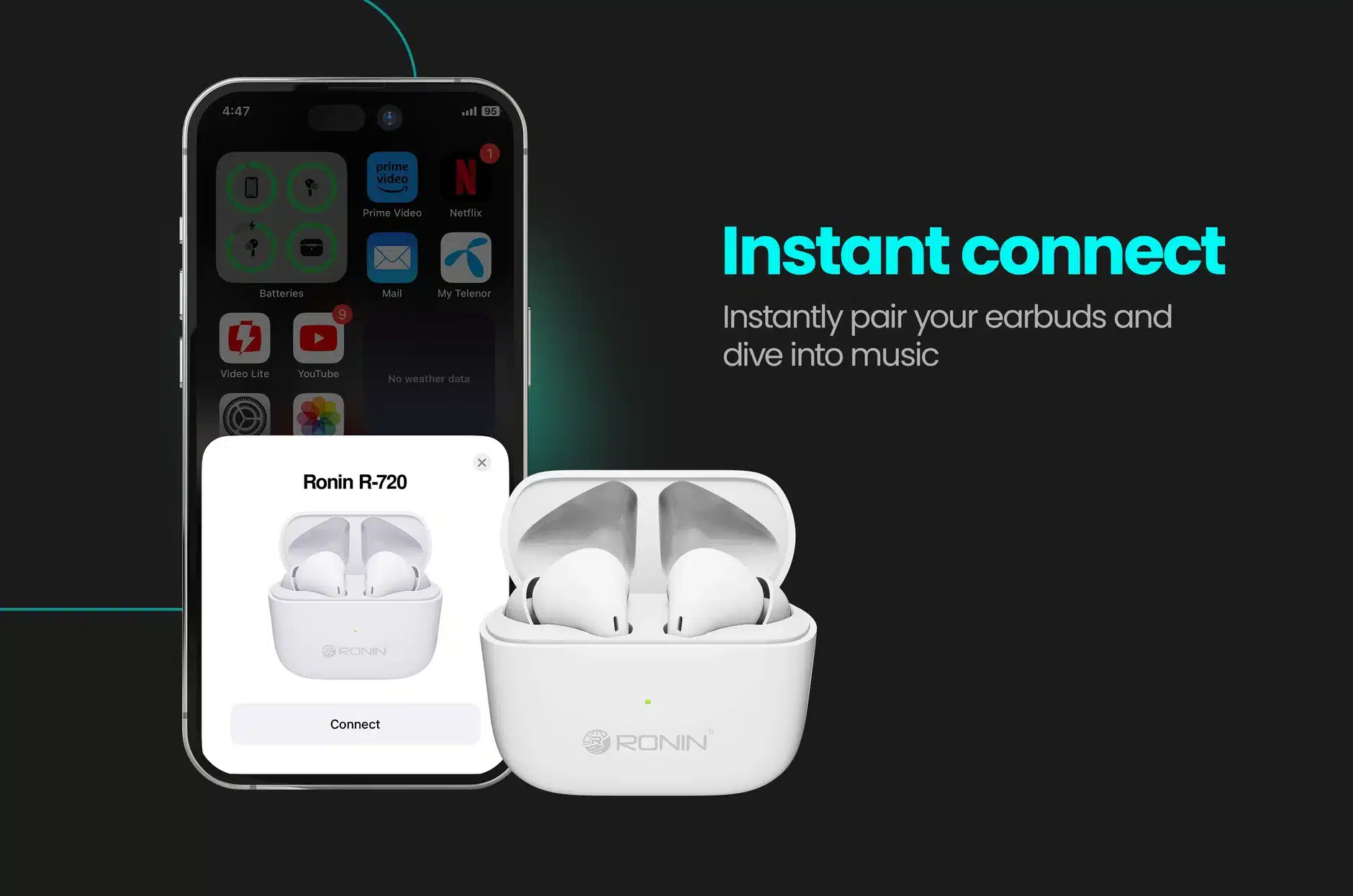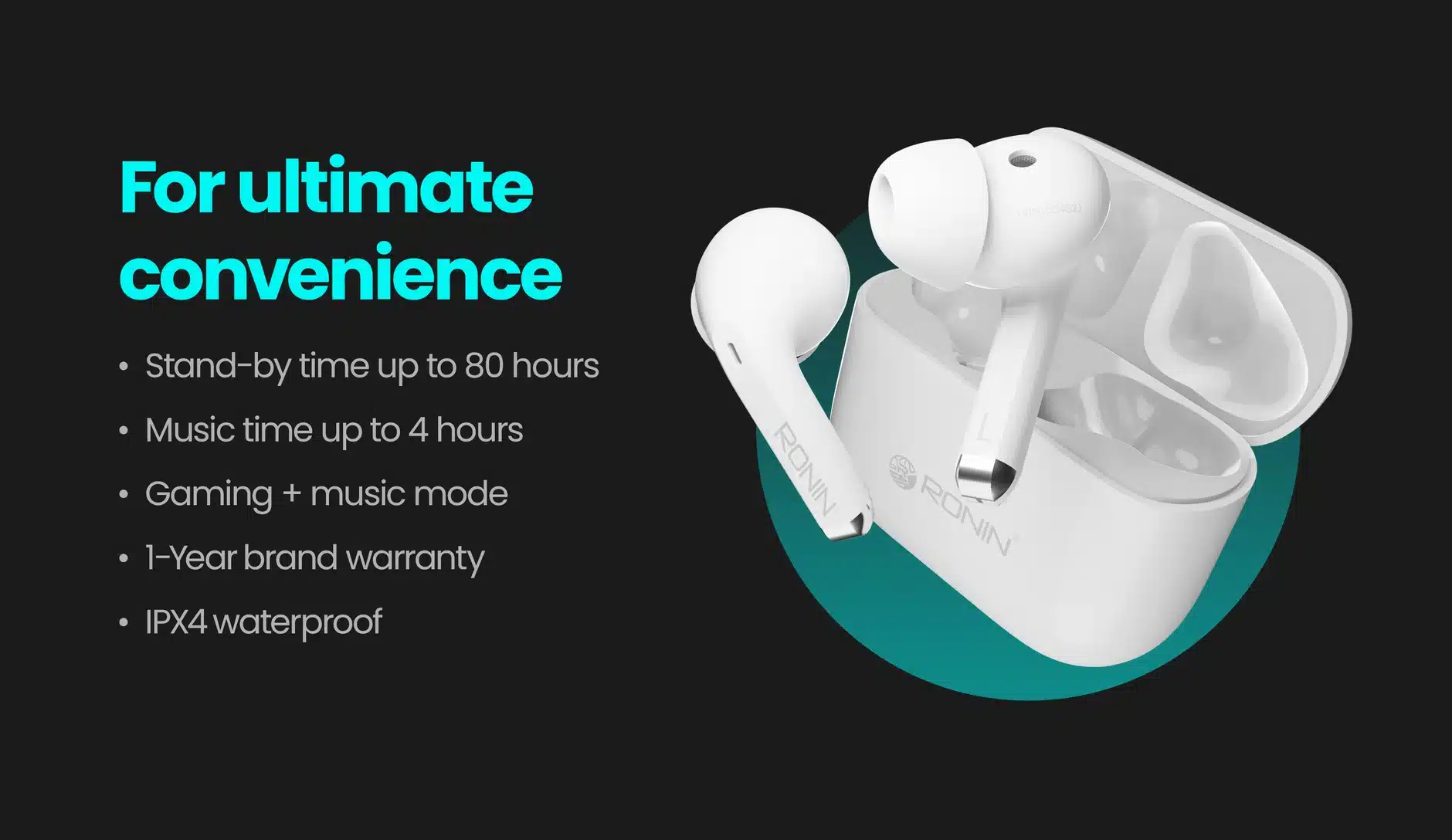 Ronin R-720 Wireless Earbuds Sound Station Gaming + Music Mode up to 4 hours Battery
