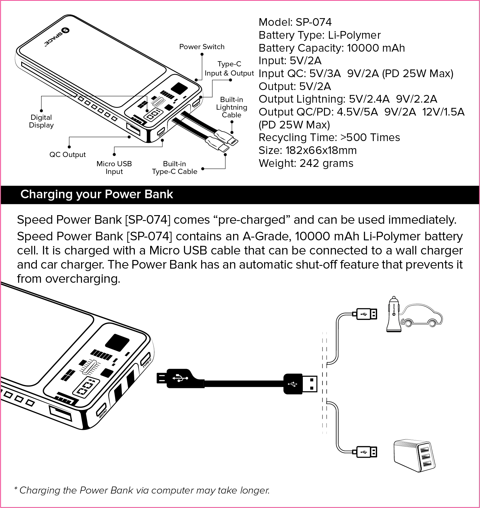 Deliver a powerful punch with the Speed PD + QC 3.0 Power Bank’s 25W Power Delivery (PD) technology. Whether it’s your smartphone, tablet, or other gadgets, enjoy rapid charging that keeps up with your on-the-go lifestyle.