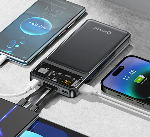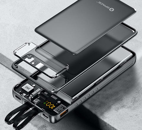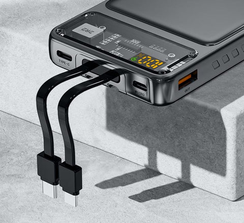 Elegance meets functionality with the transparent design of the Speed PD + QC 3.0 Power Bank. Witness the technology in action as you charge your devices – a sleek and modern addition to your tech accessories.