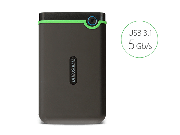 The StoreJet 25M3 external hard drive is equipped with the USB 3.1 Gen 1 interface with the support of UASP (USB Attached SCSI Protocol), providing lightning-fast transfer rates of up to 5Gbps.