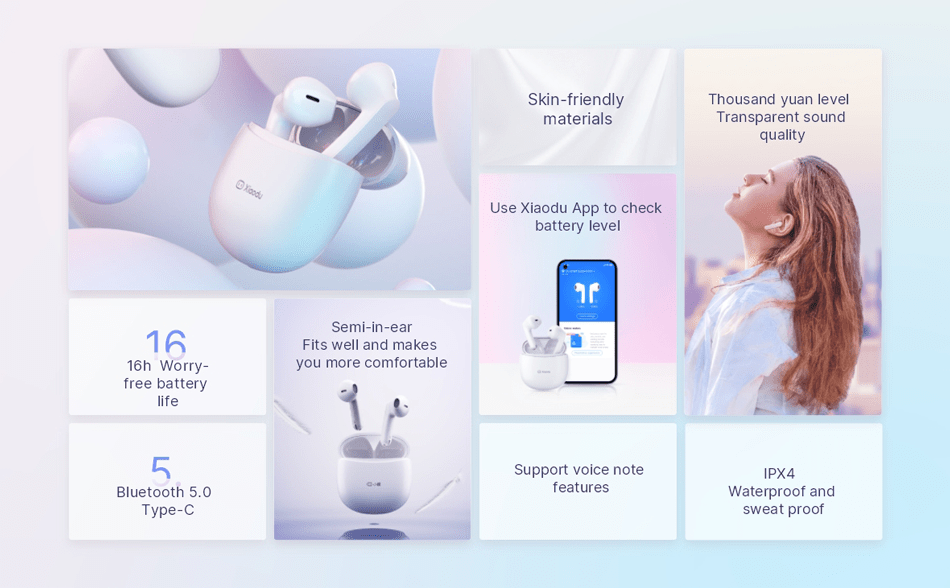 Xiaodu Du Smart Buds TWS Earbuds Wireless Bluetooth 16H Battery life