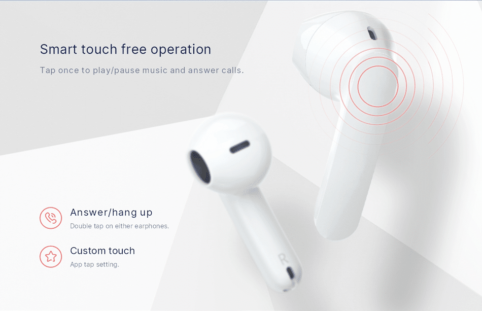 Smart touch: Play/pause, Answer/hang up, Custom touch APP tap setting
