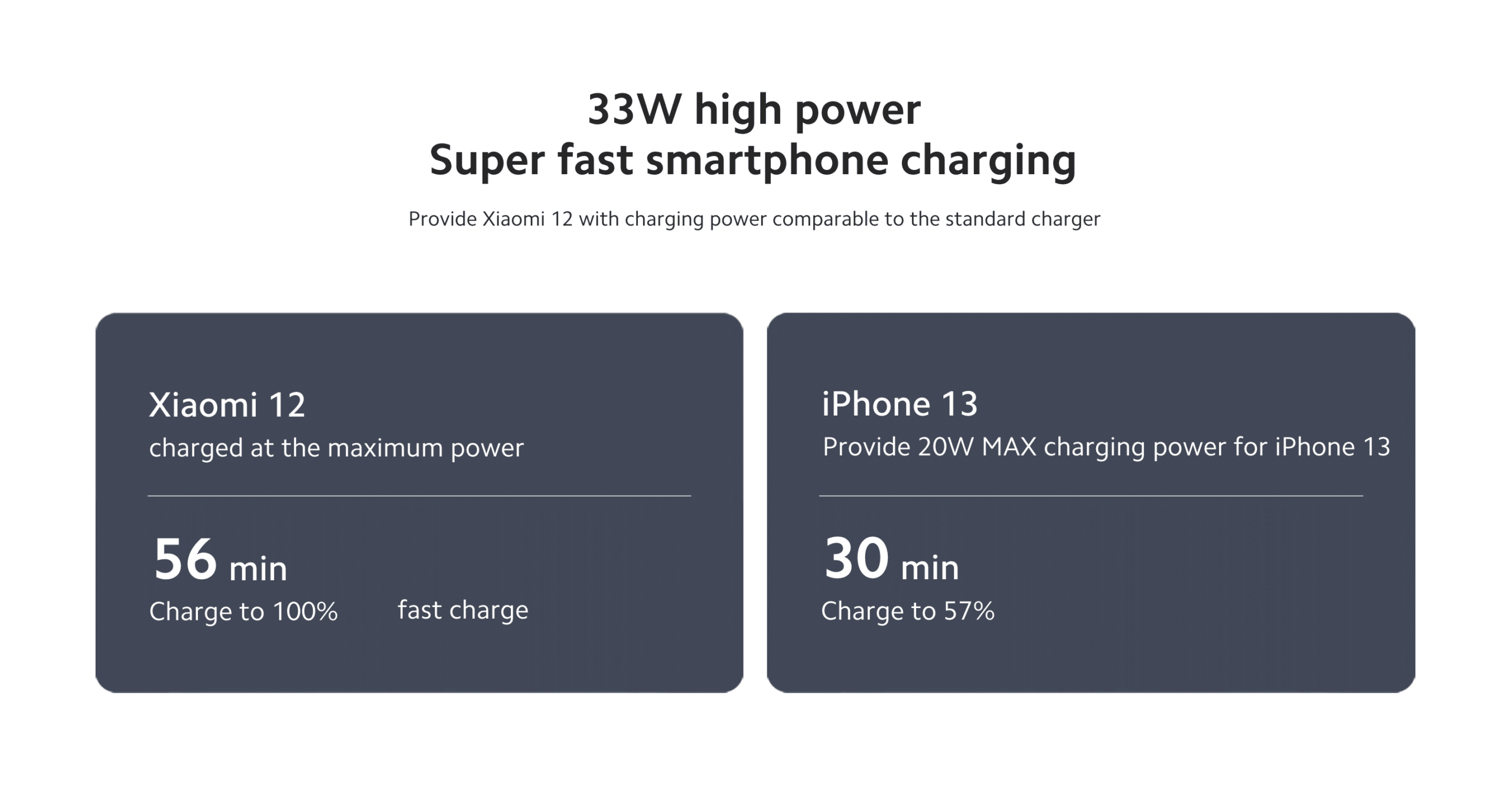 - Xiaomi 12: Full charge in 56 min