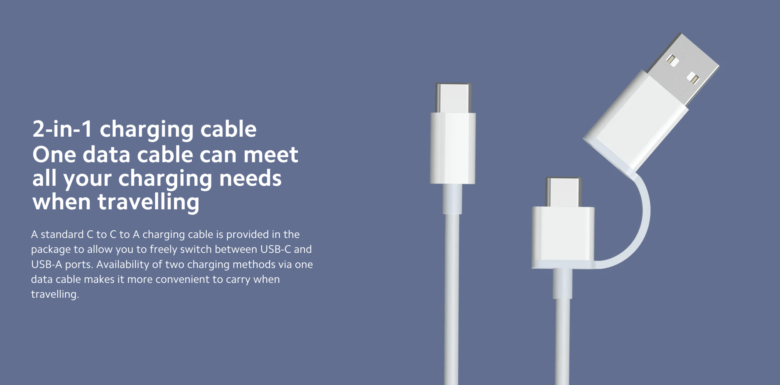 - Comes with 2 in 1 Charging Cable (Type C & Type A)