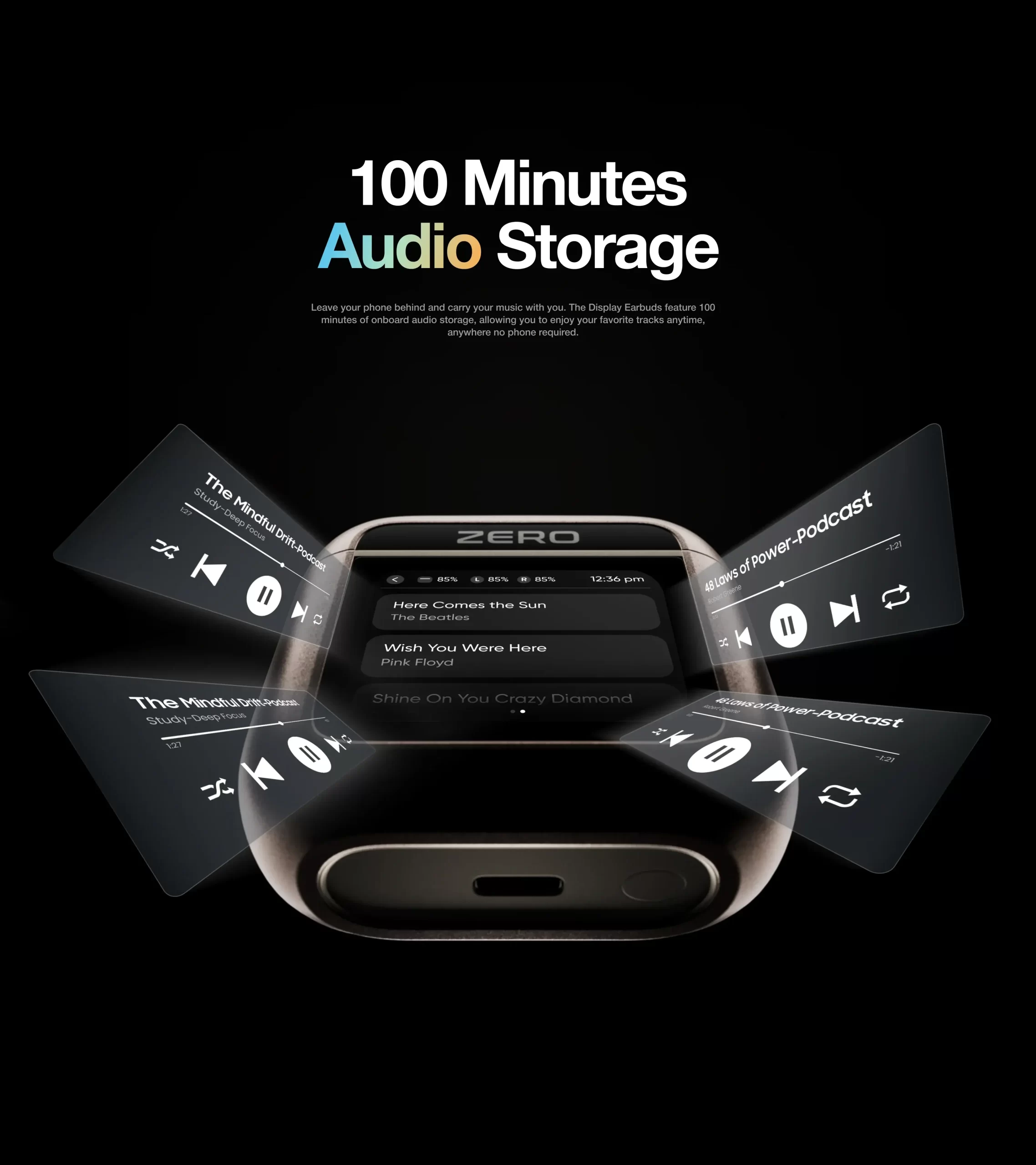 · Onboard Storage: 100 minutes of onboard audio storage allows you to enjoy your favorite tracks anywhere, anytime, without a phone.